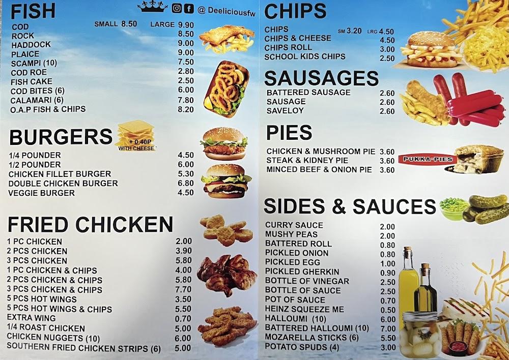 Dee-Licious Fish & Chips is a gem nestled in the heart of Welling, specifically at 17 Falconwood Parade, DA16 2PL. The establishment has become a favorite since its opening, particularly for those in search of a quick yet hearty meal. The new management, who took the reins in March 2025, has invigorated the place with fresh ideas while honoring classic fish and chip traditions.